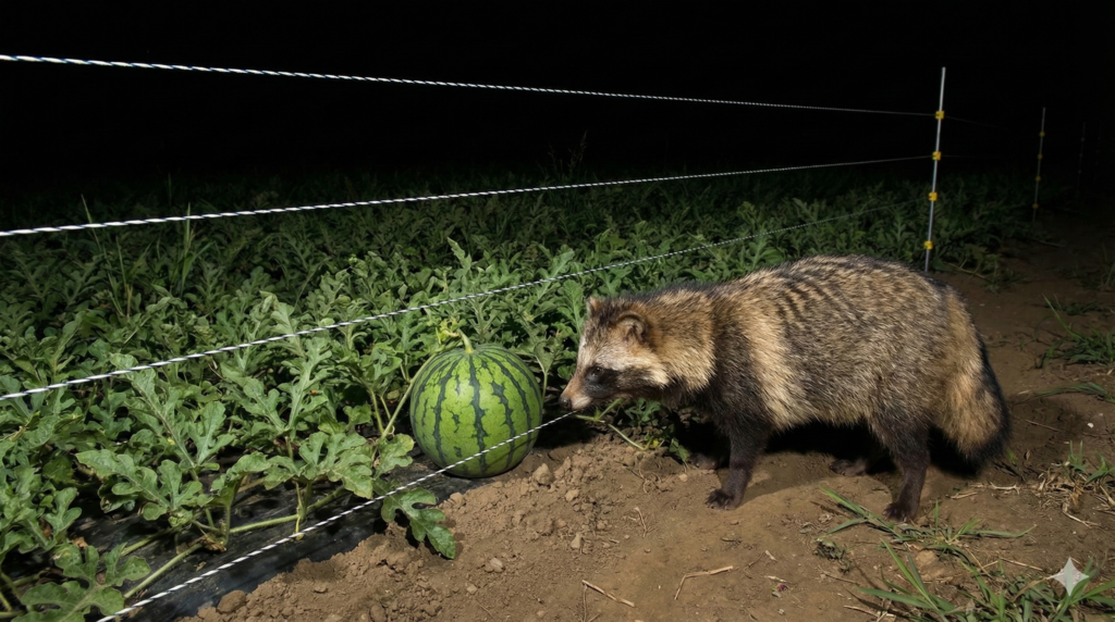 タヌキはスイカを食べる被害を防ぐ電気柵5cmと4段のコツ
