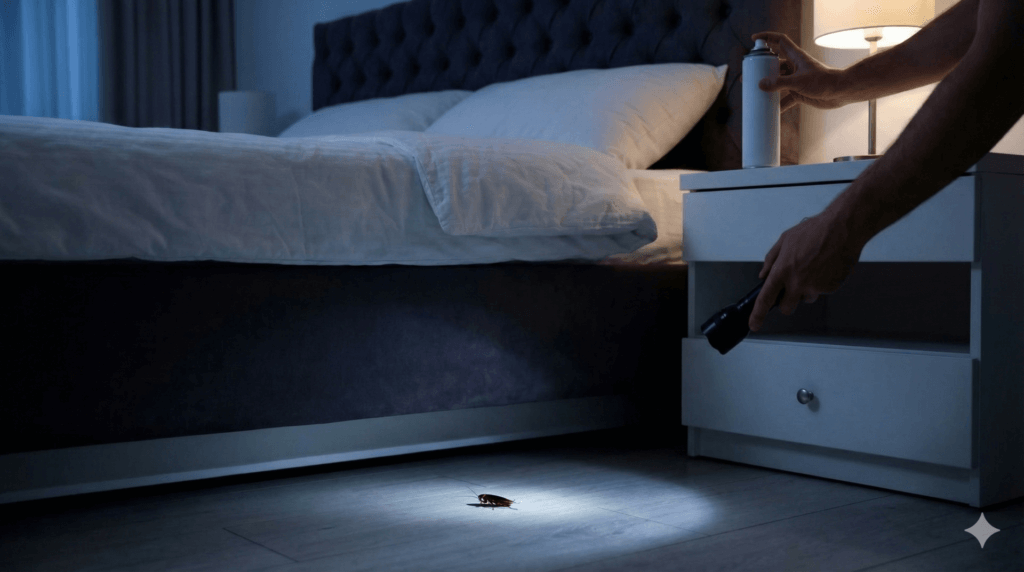 寝室でゴキブリに遭遇したら、まず安全に処理して、落ち着いてから再発防止に移りましょう。パニック状態で追い回すと、家具の裏へ逃げられて見失いがちです。寝室は心理的ダメージが大きい場所なので、私は「今夜安心して眠る」ための手順と、「明日から再発を止める」ための手順を分けて考えます。