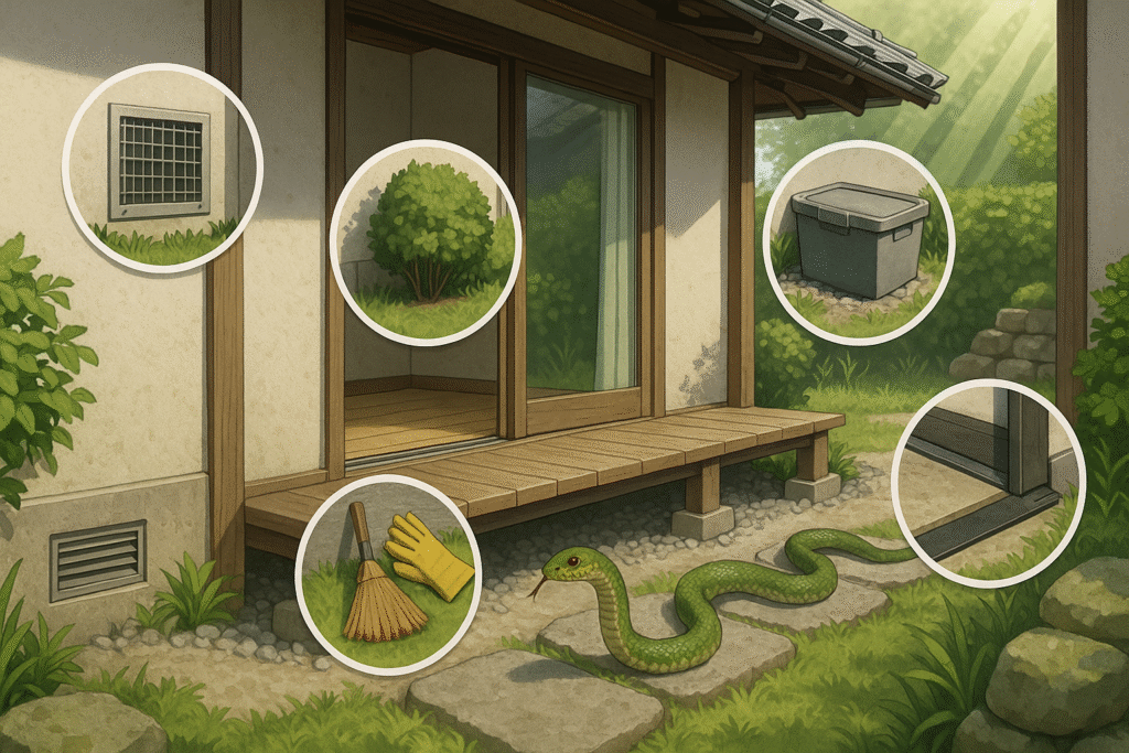 「餌」と「隠れ場所」を断てば、アオダイショウは定着しづらくなります。ヘビだけを追い払っても、原因であるネズミが残れば再発します。