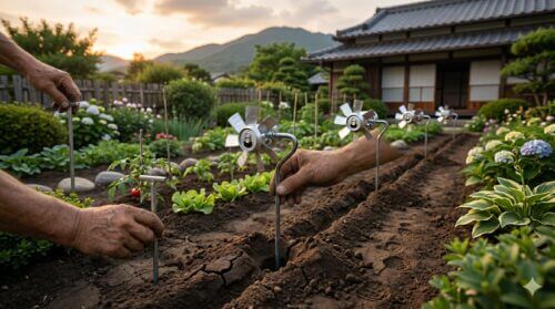 設置の深さについても、モグラの活動域に合わせる必要があります。モグラのトンネル(本道)は通常、地表から10cm〜30cm程度の場所に作られます。支柱の先端がこのトンネルの天井付近、あるいは内部にわずかに突き出る程度の深さに調整することで、モグラのアイマー器官に最も効率よく不快な刺激を与えることが可能になります。支柱が長すぎると風の力で倒れやすくなるため、地上部と地下部の比率を1:2程度に保つのが安定の秘訣です。
