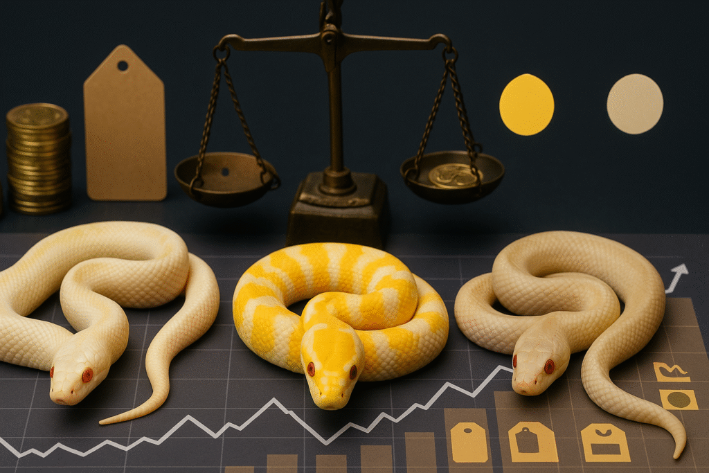 市場価格は「個体の段階(ハッチリング〜亜成体〜繁殖可能サイズ)」「血統の透明性(とくにヘテロ証明)」「健康状態(給餌・便・脱皮)」「供給タイミング」「希少表現型(T+や複合モルフ)」の掛け算で決まります。