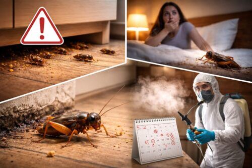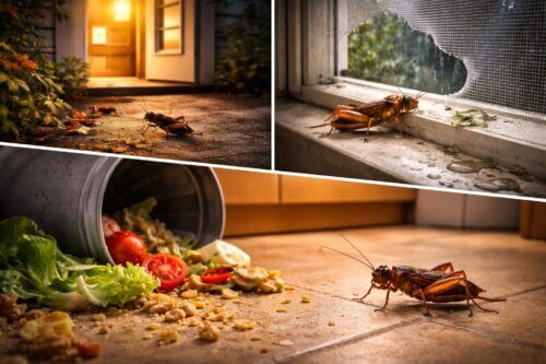 再発しやすいのは、建物まわりに草や物が多い、玄関灯などで夜に虫が集まりやすい、換気口や配管の処理が甘い、室内に湿気が残る、水回りの掃除頻度が低い、といった家です。こうした条件が重なると、コオロギだけでなく別の害虫も寄りやすくなります。つまり、コオロギ対策は住まい全体の害虫対策の基礎固めにもつながります。