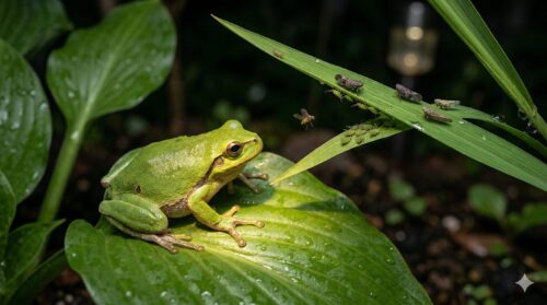カエルの目は「動くもの」に特化した感度を持っており、人間の目では気づかないようなわずかな羽ばたきや這う動きも逃しません。私自身、夜の庭でライトに照らされたアマガエルが、次々とコバエを吸い込むように食べていく姿を何度も目撃してきましたが、その効率の良さは「天然の殺虫装置」と呼ぶにふさわしいものです。