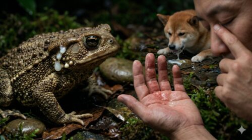 カエルによる健康被害で最も注意しなければならないのが、皮膚から分泌される「生理的毒性」です。特に日本全土に広く分布するニホンヒキガエルや、石垣島などに生息するオオヒキガエルは、非常に強力な毒を保有しています。彼らの目の後ろにある「耳下腺(じかせん)」からは、白く粘り気のある毒液が分泌されます。これにはブフォトキシンやブフォテニンといった成分が含まれており、心臓の鼓動を乱したり、神経系に作用したりする危険な物質です。