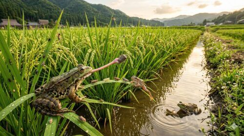 また、ヌマガエルやツチガエルは地面付近で活動し、土壌に近い部分で発生する害虫の個体数を抑制します。私が見てきた現場でも、カエルの個体数が多い田んぼほど、害虫の大量発生(アウトブレイク)が起こりにくいという傾向が顕著に見られます。