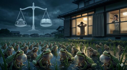 ここで気になるのが、隣の家の庭や近くの田んぼから聞こえるカエルの鳴き声に対して、法的な措置が取れるのかという点です。過去の裁判例(東京地裁などの判決)を紐解くと、カエルの鳴き声は原則として「自然音」とみなされる傾向が非常に強いです。人間が意図的に発生させている機械的な騒音とは異なり、カエルが自発的に鳴いている場合、その土地の所有者に「カエルを黙らせろ」という義務を負わせるのは現実的ではない、という判断です。判決では「カエルの鳴き声は自然の摂理によるものであり、不法行為には当たらない」として、訴えが棄却された事例が有名です。