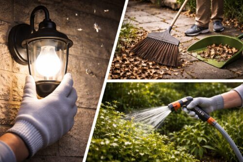 最も効果が高いのは、屋外照明をすべてLED照明に変更することです。従来の蛍光灯や水銀灯は、多くの昆虫が強く引き寄せられる「紫外線」を放出していますが、LEDは紫外線をほとんど含みません。照明をLEDに変えるだけで、家の周りに集まる虫の数は劇的に減少します。餌がなければ、トカゲもより効率的に狩りができる別の場所へと移動していきます。