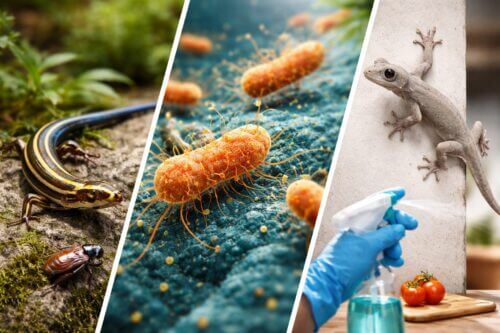 トカゲやヤモリを単なる「見た目が嫌な生き物」としてだけでなく、実害のある衛生害虫として認識しなければならない最大の理由が、細菌汚染のリスクです。野生の爬虫類は、その腸内細菌叢の一部として高確率でサルモネラ菌(Salmonella spp.)を保菌しています。これは彼らにとっては自然な状態であり無症状ですが、人間に感染すると深刻な中毒症状を引き起こします。