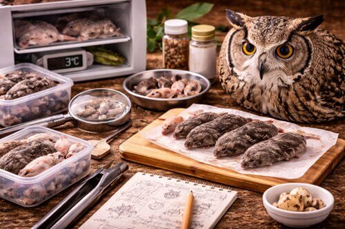 フクロウの餌にネズミを使う意味は、栄養のバランスだけではなく、被毛や骨を含めた自然な消化サイクルを維持しやすい点にあります。だからこそ、冷凍マウスのサイズ選び、解凍、切り分け、衛生管理、観察までをひとつながりで考えることが大切です。フクロウの餌は「食べれば何でもよい」というものではなく、何をどう与えたかが、そのまま体調や行動に表れやすい管理項目です。