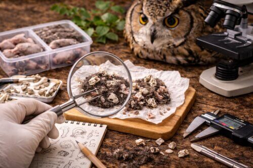 フクロウの管理で見逃せないのがペリットです。被毛や骨などの不消化物がまとまって吐き戻されるのは、異常ではなく、むしろ自然な消化の一部として見るべき現象です。フクロウは肉や内臓のような消化しやすい部分を処理したあと、残った被毛や骨を塊にして排出します。この流れがあるからこそ、上部消化管の清掃と消化効率の維持がしやすくなります。つまり、ペリットは「汚いから困るもの」ではなく、健康の手掛かりとして非常に価値のある観察対象です。