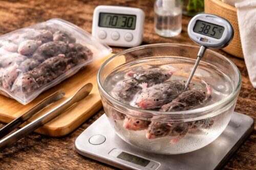 冷凍マウスは、ただ溶けていればよいわけではありません。私は衛生と嗜好性の両立を意識して、冷蔵でゆっくり解凍し、与える直前に人肌程度まで調整する考え方をおすすめします。急激な温度変化をかけると、ドリップが増えやすく、見た目や匂いの劣化にもつながります。いっぽうで、冷たいまま出すと食いつきが鈍くなる個体もいます。食べない原因が温度だったというのは、実際によくある失敗です。