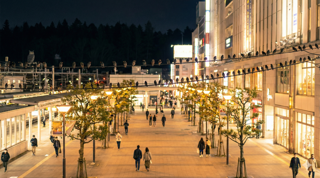 一本の木だけなら受け止めきれない大群でも、連続した止まり場があれば“収容できてしまう”。ここが駅前・繁華街に集中する理由です。