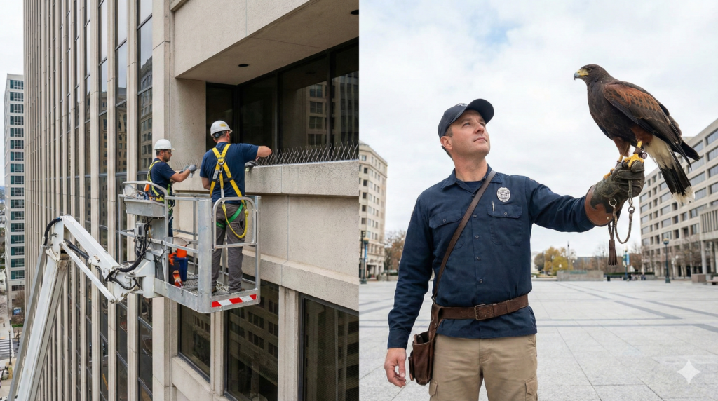 鷹匠による追い払いは「本物の天敵」で圧をかけられるのが強みですが、継続運用や周辺調整が必要です。