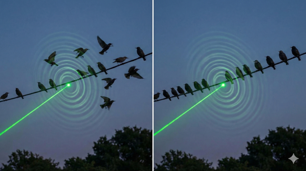 音・光・レーザーは、ムクドリ対策の“入口”としては有効なことがあります。