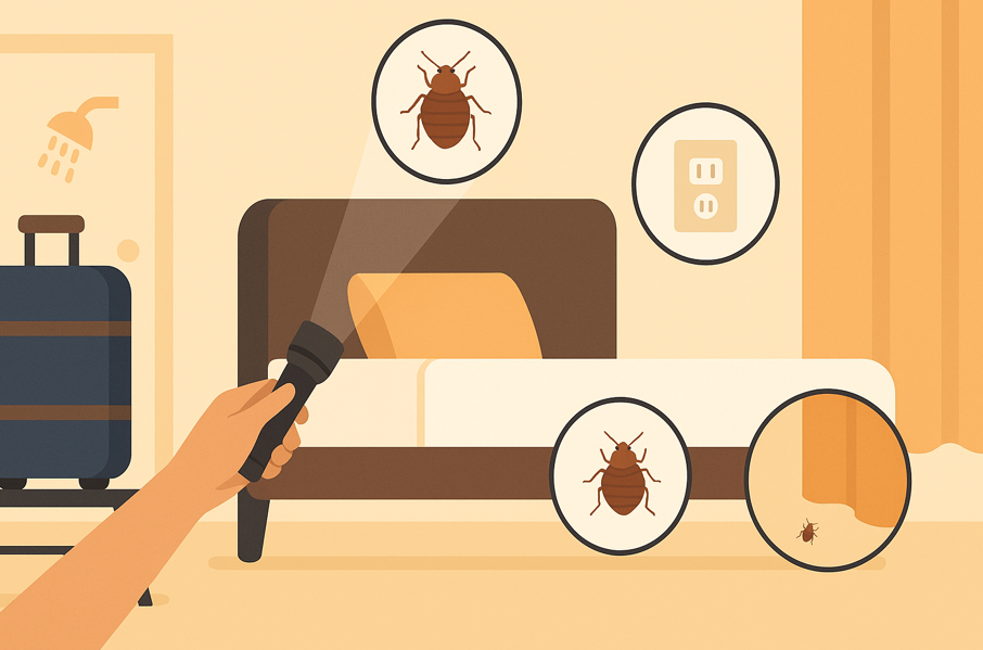 宿泊先のベッドフレームやマットレス縫い目、ヘッドボード裏、壁のコンセント周りなどの狭所が潜伏場所になりやすく、夜間に吸血行動を取ります。