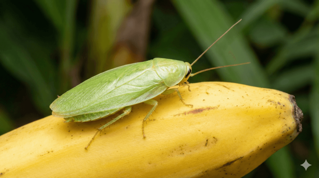 バナナと一緒に検索されやすいのが、通称グリーンバナナローチ(いわゆるグリーンバナナゴキブリ)です。名前の通り、成虫が淡い緑色で「え、これがゴキブリ?」と驚く見た目をしています。ここで誤解が起きやすいのは、ゴキブリという言葉だけで、台所に出る黒っぽい種類(屋内で増えるタイプ)と同列に扱ってしまうことです。