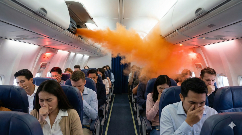 もし機内で熊スプレーが誤作動してしまうと、狭く密閉された客室に高濃度のカプサイシンが充満し、乗客だけでなく乗務員やパイロットまで激しいせき込みと視界不良に襲われます。