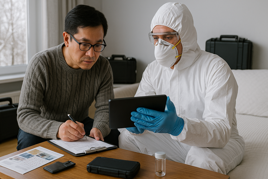 ご家庭での対処を続けても新しい痕跡が出る、あるいは複数の部屋へ広がる気配があるときは、専門調査と計画的処理を検討する段階です。次のような状況が目安になります。