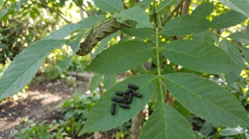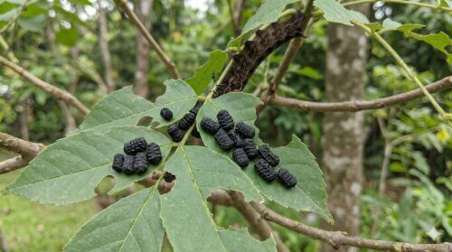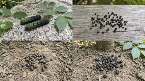 スズメガの幼虫が残す巨大な黒いフンの特徴