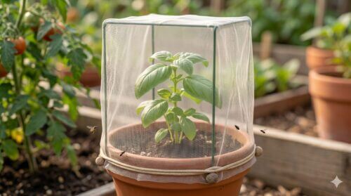 害虫対策において、私の持論は「入れさせないことが最大の攻撃」であるということです。特にバジルにつく黒い虫の多く(アザミウマ、キスジノミハムシ、コバエなど)は、飛来してくる成虫が原因です。これを物理的に遮断する防虫ネットは、最も原始的かつ最も確実な予防法といえます。