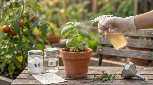 自然派だからといって、いくらでもかけて良いわけではありません。濃度が濃すぎたり、炎天下で散布したりすると、バジルの葉が焼けて茶色くなる「薬害」を起こすことがあります。必ず曇天の日や夕方に散布し、まずは数枚の葉で試して1日様子を見てから全体に使用するのが鉄則です。また、散布から数時間後、または翌日に真水でサッと洗い流してあげると、植物への負担を最小限に抑えつつ、効果だけを享受できます。