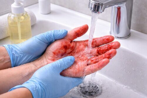 シンナーや強い溶剤を使う、ナイフのような硬い物で削る、何度もゴシゴシこする、といった方法は皮膚トラブルにつながりやすいので避けてください。特に小さな傷がある手では刺激が強すぎます。除去後は、石けんで二度洗いし、乾燥しやすい方は保湿もしておくと皮膚バリアを保ちやすくなります。簡単に見える作業ですが、血や排泄物が混ざる可能性がある場面では、単なるべたつき処理ではなく衛生対応の一部として考えることが重要です。