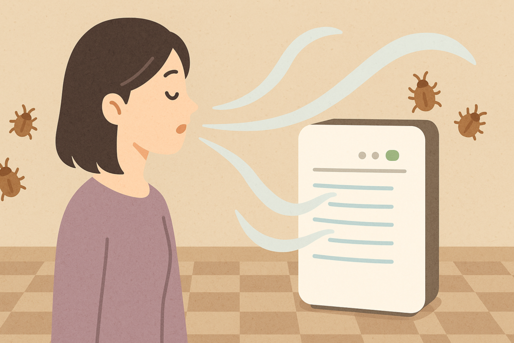 発生原因やどこから侵入するかの整理はもちろん、空気清浄機の効果、吸い込むことの限界、フィルターの扱い、加湿器付き機種の注意点、駆除でスプレーやくん煙剤を使うときの落とし穴、アレルギー面の配慮まで、最短で迷いが減る順番でまとめます。