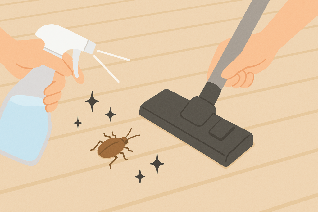 焦るほど雑になりやすいので、落ち着いて、まずは掃除機で吸って数を減らし、必要ならスプレーは補助として使う、という順番が安全です。