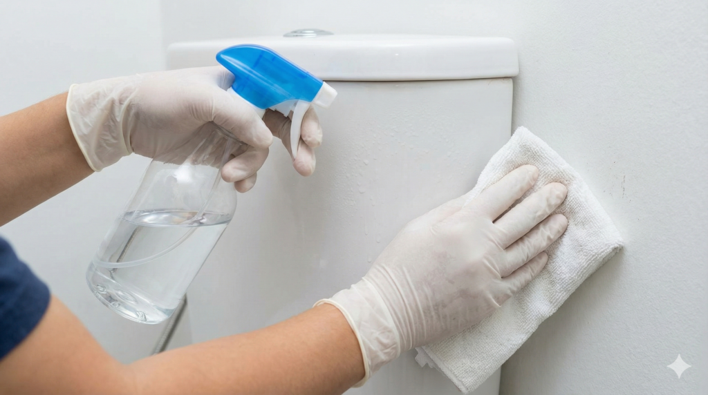 タンク裏・床の隅・巾木まわりは、噴霧→拭き取り→乾燥の流れで「餌場」を減らす意識で進めてください。