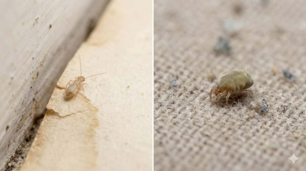チャタテムシは「汚物に寄ってくる虫」というより、カビを餌にして増えるタイプです。