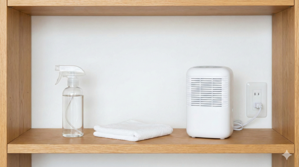 たとえば棚の中を拭いたなら、同時に「湿気がこもる収納」になっていないかを見直してください。