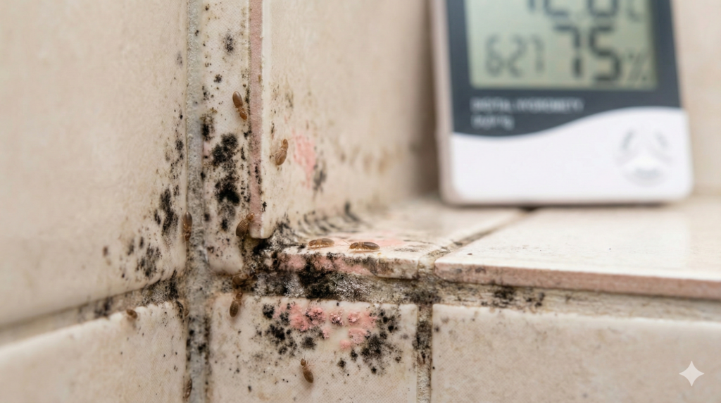多くのご家庭で起きているのは、湿気が残る場所に生まれた微細なカビと、そこに溜まった目に見えない有機物がセットになって、虫の居場所とエサが成立するパターンです。