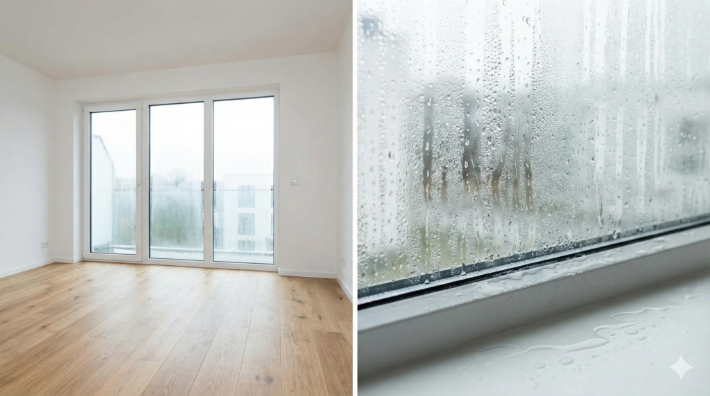 新しい家ほど気密性が高く、外気の影響を受けにくい反面、一度こもった湿気が抜けにくい傾向があります。