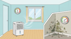 再発を防ぐ環境管理の核は、湿度の運用です。除湿機、換気扇の連続運転、サーキュレーターで空気を動かす。この3点で、押し入れやクローゼットの「湿気ポケット」を潰していきます。
