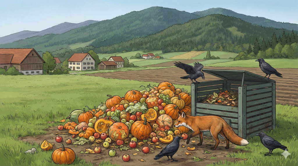 生ゴミ、家庭菜園の野菜、収穫されずに残った果樹園の実、コンポスト、家畜の死骸などは、ヒグマにとって「手間をかけずに手に入る高カロリー食」として学習されやすい存在です。