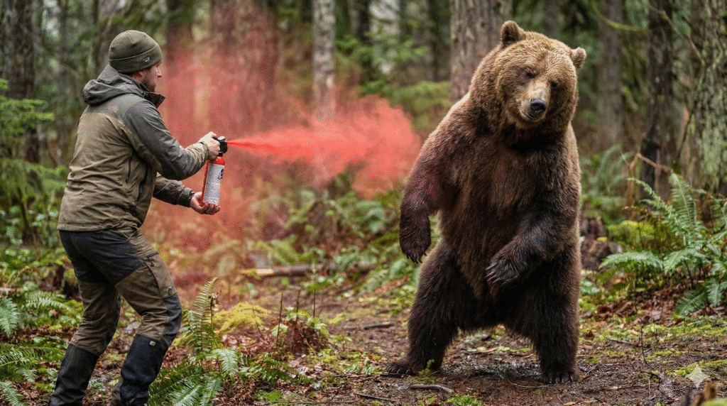 熊スプレーは、正しいタイミングと距離で一撃を当てる必要がある「精密な安全装置」だと考えてください。