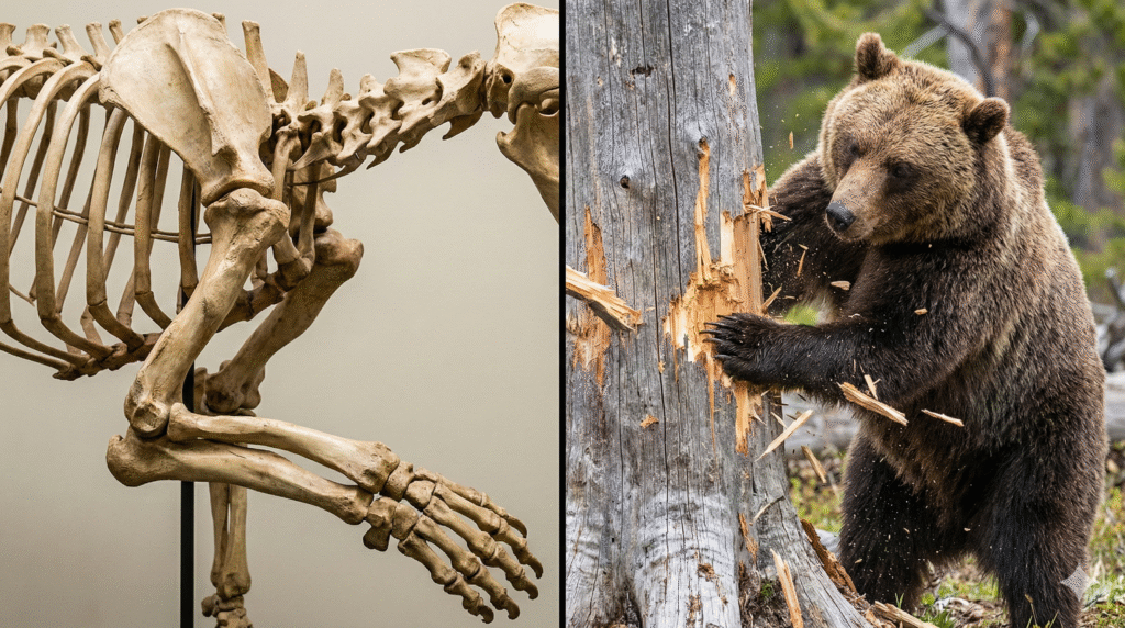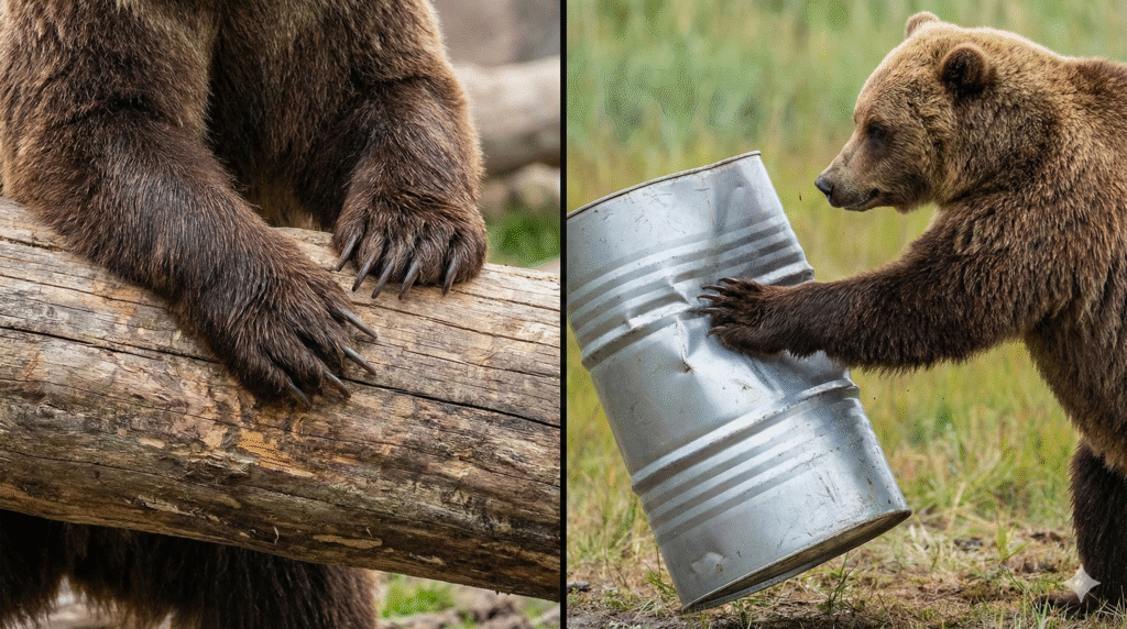一方、ヒグマは森林や山岳地帯で、掘る・押す・壊すといった行動を日常的にこなすため、前足のパワーと骨格の頑丈さが際立っています。