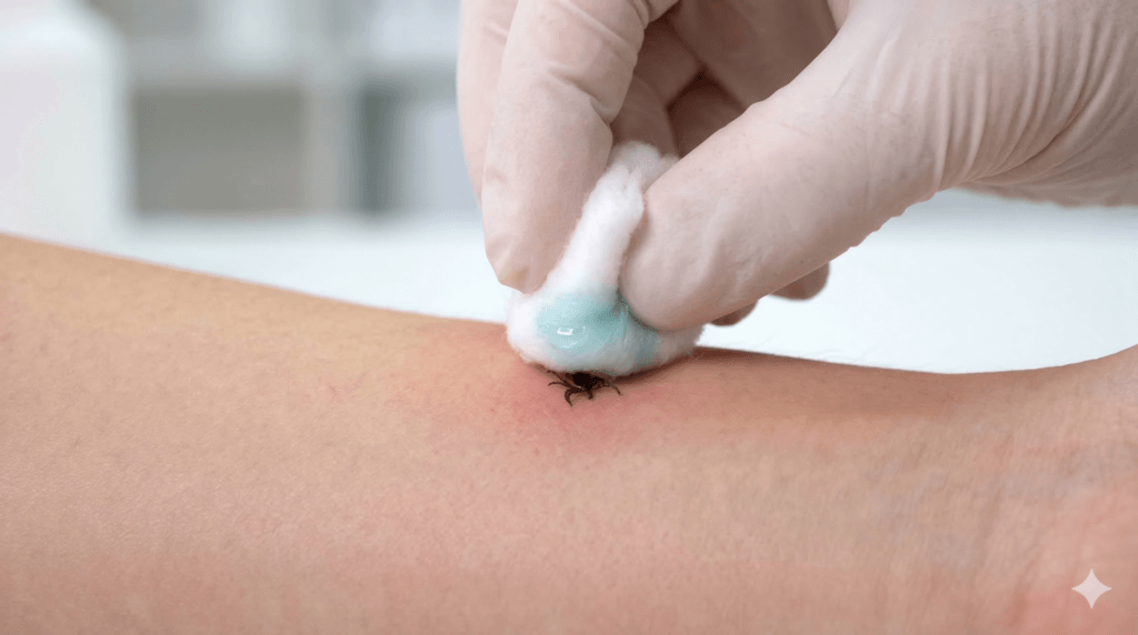 ここで強調したいのは、アルコールは消毒という言葉のイメージが強いため、何となく正しそうに見えることです。ですが、マダニが皮膚に固定されている状態では、問題は表面の清潔さだけではありません。大事なのは、口器を残さず、余計な圧力をかけずに、必要なら感染症も含めて評価することです。これは家庭のアルコールでは完結しません。