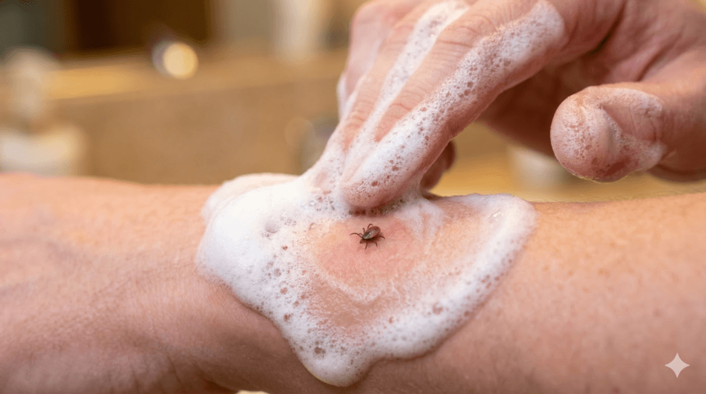 石鹸を完全否定する必要はありません。使いどころを間違えないことが大切です。たとえば、医療機関で適切に除去されたあとの清潔保持や、野外活動から戻ったあとに体表のチェックをしながら洗う場面では役立ちます。問題なのは、食いついている最中のマダニに対する除去手段として石鹸を使おうとすることです。今、皮膚に黒っぽい粒が固着しているなら、石鹸で落とす発想はいったん止めてください。