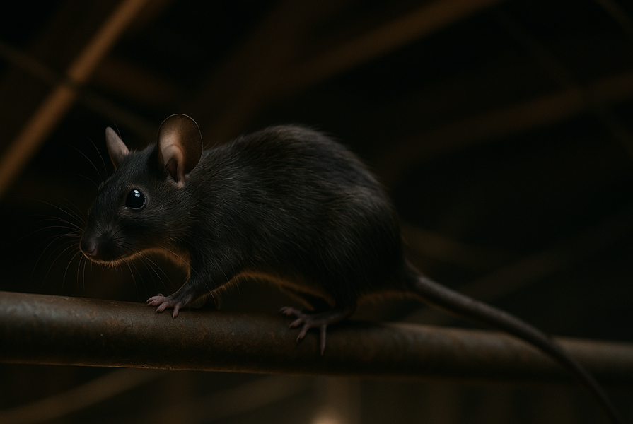 クマネズミは軽快で高所を好み、樹上や梁を移動しやすい体つきとされています。