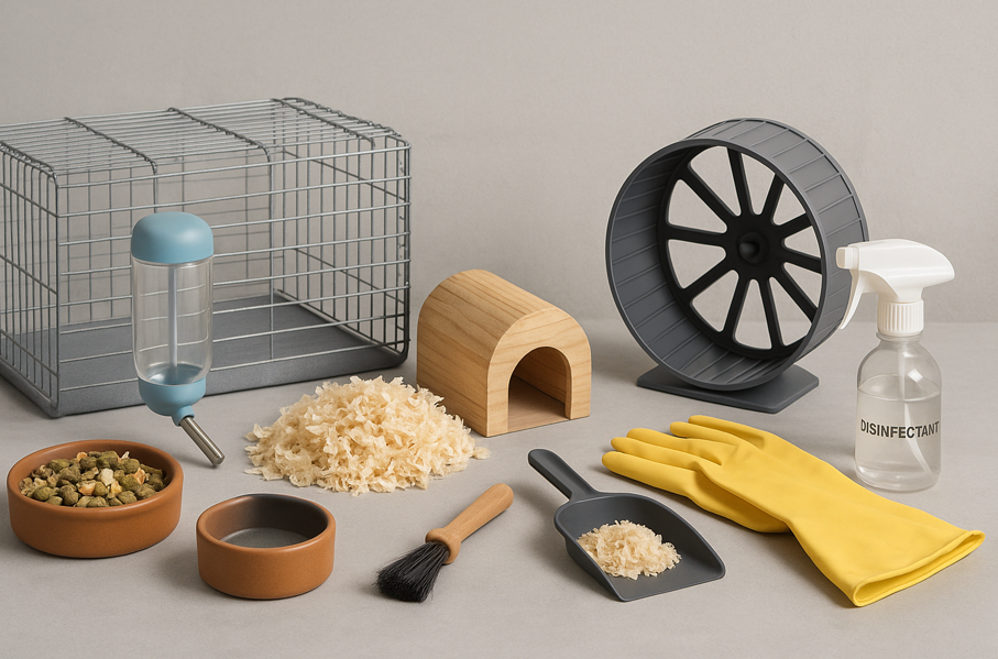 ここでは一般的な小型齧歯類を安全に管理するための基本用品を整理します。野生個体ではなく、ペットショップの個体を前提とした標準装備です。