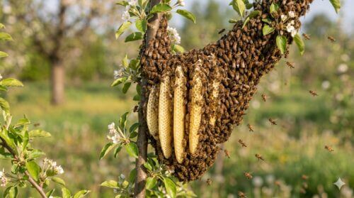 ミツバチの蜂の巣のでき始めは、スズメバチやアシナガバチのそれとは全く性質が異なります。春先に突然、庭の木や家の壁に数千匹のハチが黒い塊となって群がっている光景を目にすることがありますが、これは「分蜂(ぶんぽう)」と呼ばれる引っ越しの最中です。新しい女王蜂が誕生した際、旧女王蜂が働き蜂の約半数を連れて巣を出て、新しい家を探すプロセスです。