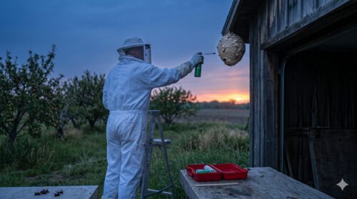 夜間の作業は視界が悪いため、事前の下見が重要です。昼間のうちに、巣の位置、足場の安定性、退路(ハチが飛んできた時に逃げ込むドアなど)を確実に確認しておきましょう。いざ本番では、ハチを刺激しないよう、忍び足で近づく慎重さが求められます。暗闇の中でハチを全滅させるこの手法こそ、蜂の巣のでき始めにおける最もスマートな解決策です。