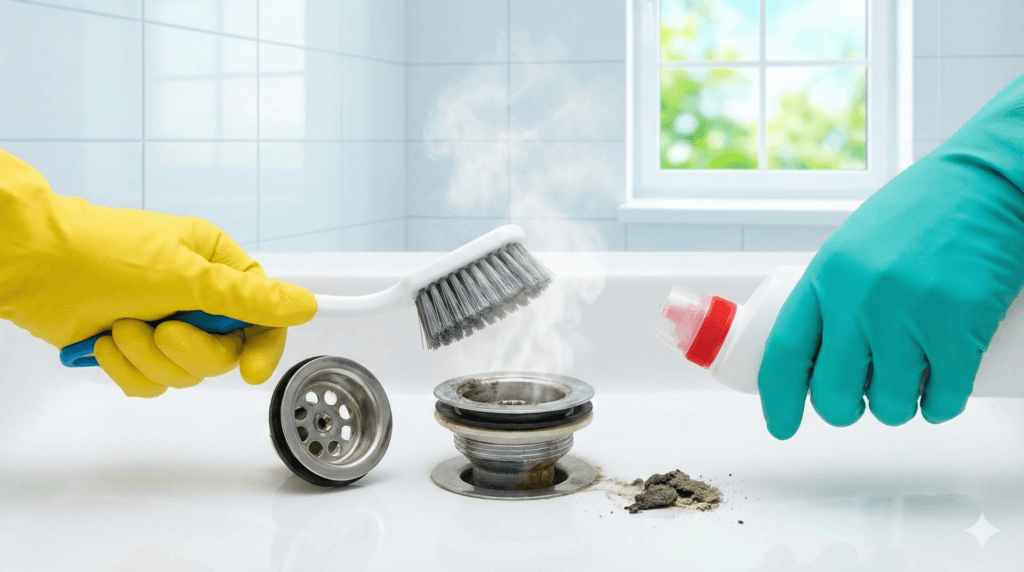 ゲジゲジの臭いと下水臭・カビ臭を同時解決する排水口掃除術