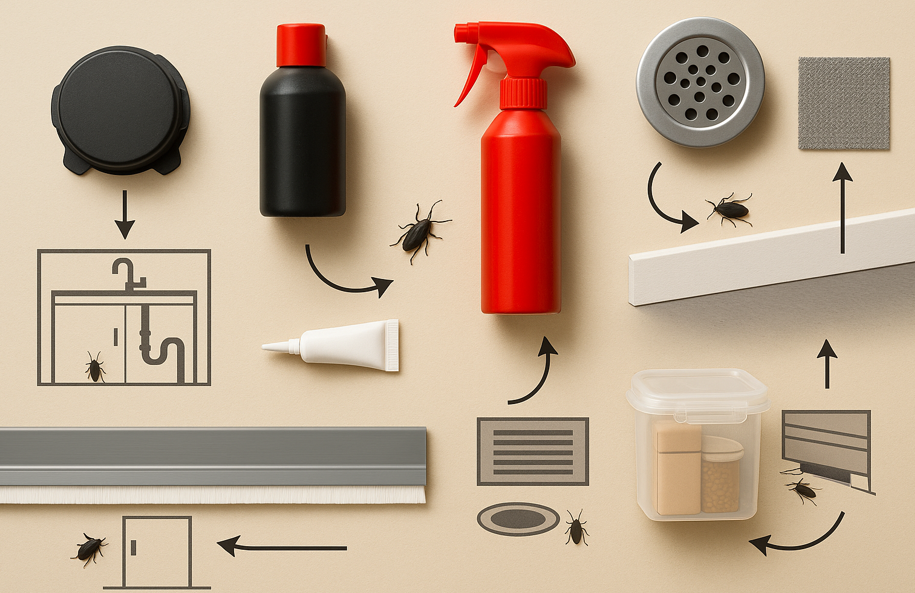 - 物理封鎖:玄関下端のドアスイープ、サッシ・建具の隙間テープ、配管貫通部のパテ・シール再施工、換気口の微細メッシュ化、ドレンホースへのキャップ