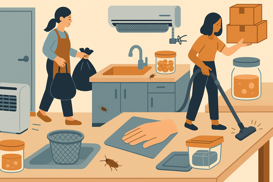 - 排水・衛生:排水口のネット常設、月1回の管内洗浄、厨房・家電背面の脱脂清掃の定例化、ゴミはフタ付き容器で二重袋保管