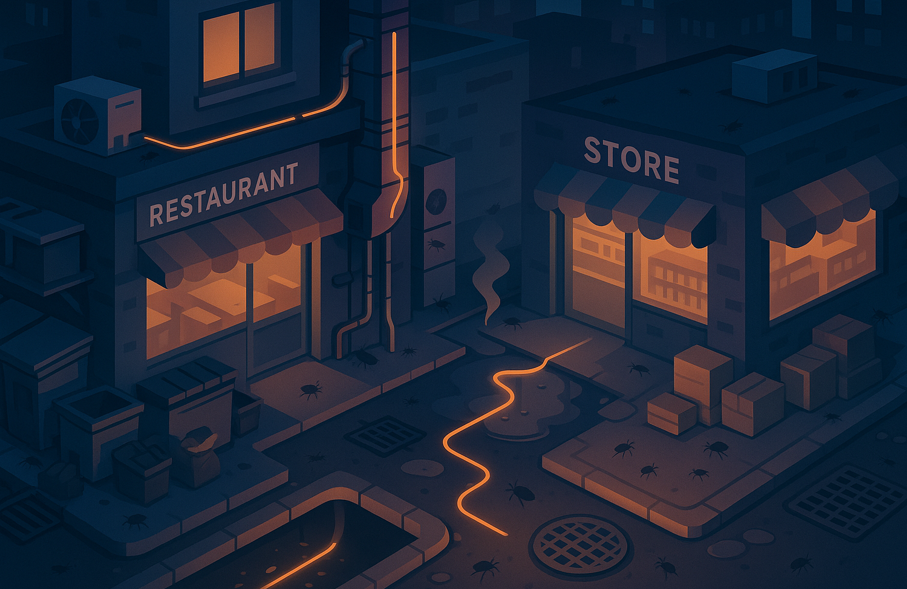 都市部の中でも東京は、人口・事業所・交通・物流が高度に集積し、深夜まで稼働が続くエリアが多いため、餌資源(食品残渣や油分)と潜伏場所(設備機器の背後、配管周り、共用部の隙間)が恒常的に供給されやすい環境です。