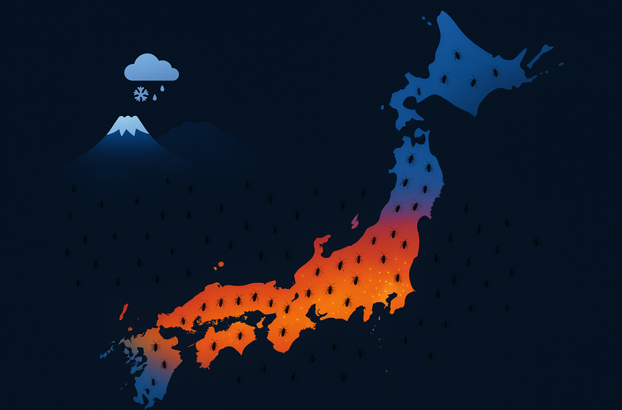 一般に日最低気温の上昇は活動可能時間の延伸に直結し、繁殖サイクルの短縮や生存率の上昇を通じて、屋外・半屋外空間からの侵入圧を高めます。(出典:気象庁「ヒートアイランド現象」)