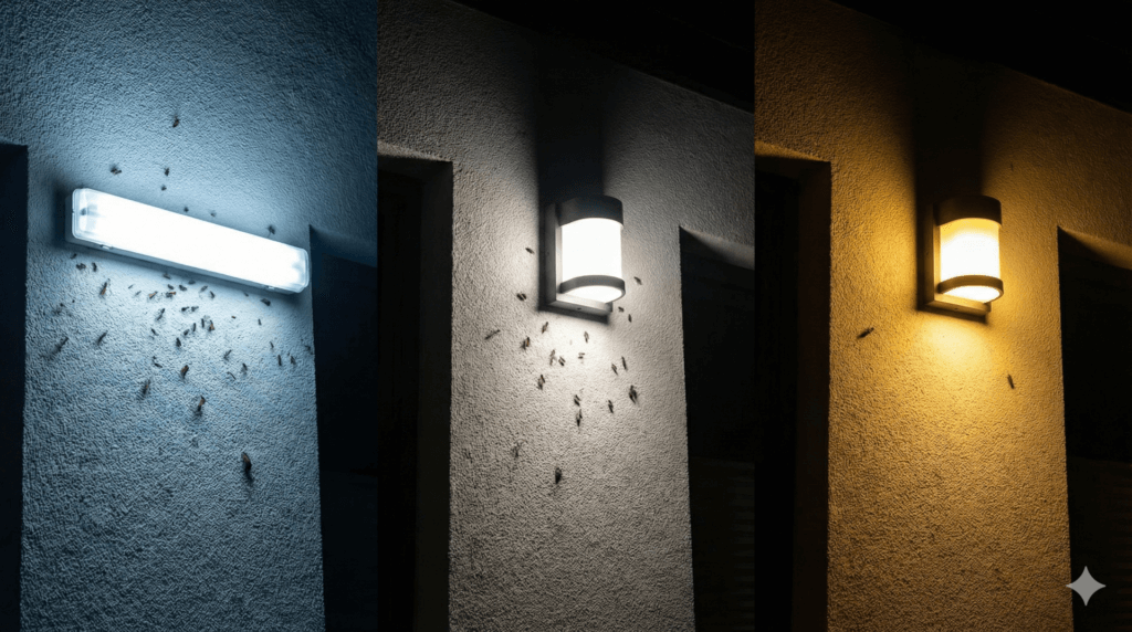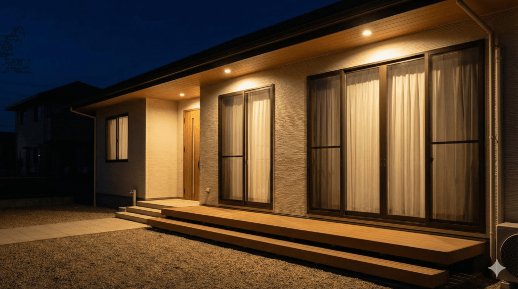 ここも誤解が多いところです。明るさを落としすぎると防犯面の不安が出ます。だから私は、光量をゼロにするよりも、波長(光の性質)と配置(漏れ方)を最適化する方向で提案します。玄関灯は必要、でも寄せにくいものに変える。窓際は必要、でも外に漏れにくいように工夫する。こうやって生活の安全と虫対策の両立を狙います。