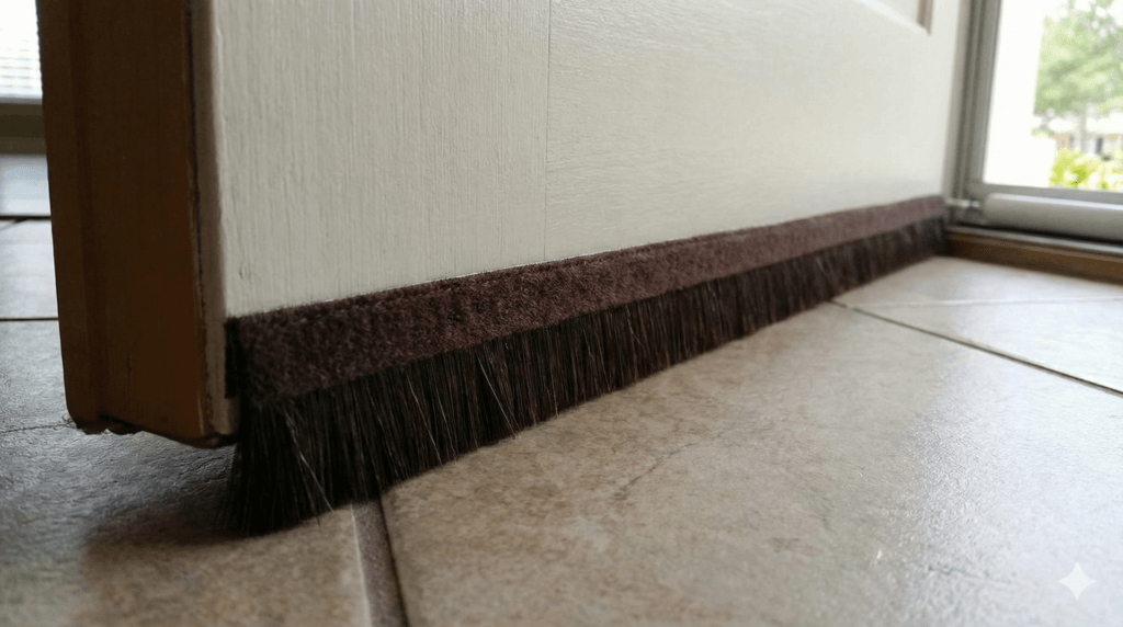 まず隙間テープで物理的に塞ぎます。ドア下にはドアスイープやブラシ状の部材が効きます。枠側は薄いスポンジ系のテープで、閉まりを邪魔しない範囲で調整します。合わせて玄関まわりの掃除。砂や髪の毛、落ち葉が溜まると「隠れやすい・湿りやすい」で居心地が良くなります。玄関マットの下、下駄箱の裏、傘立て周りも見落とされがちです。